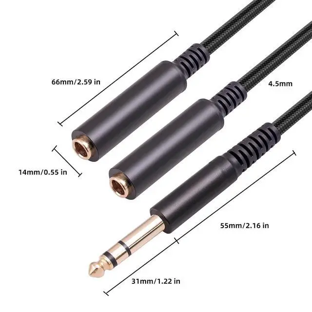 1/4 inches (6.35mm) Stereo Audio Cable Male to Dual Female TRS