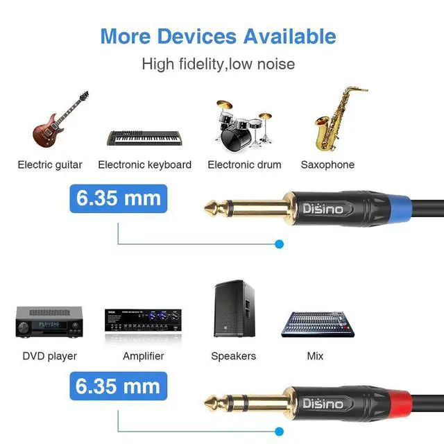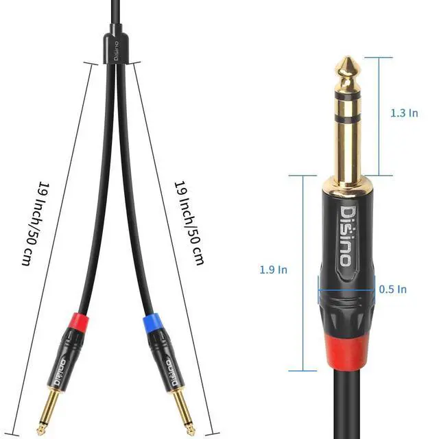 DISINO 1/4 TRS Stereo to Dual 1/4 TS Mono Insert Cable Y-Splitter Cable,This Insert cables are used for creating a real-time effects loop by connecting a channel insert on an audio mixing board to an external effects processor with 1/4" unbalanced connections. Connect the TRS plug into the "insert" jack of your mixing board. The tip of the jack is a send (sending a mono signal to an external effects professor) and the ring is the return (returning a mono signal from the external effects processor back into the mixing board). This cable can also be used to split an unbalanced stereo signal into two unbalanced mono signals, or to combine two mono signals into a single stereo signal.