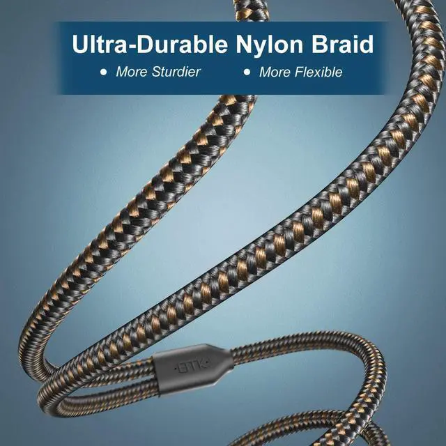 The braided nylon sheath is very strong and beautiful, providing extra protection from damage and abrasion.The extra-long protection is designed for the cable connector, which can effectively improve the service life of daily use.