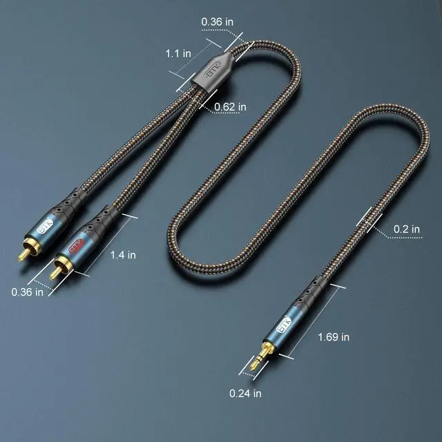 RCA to 1/8 Stereo Cable features corrosion resistant gold plated 3.5mm connectors and high quality polished metal connectors.