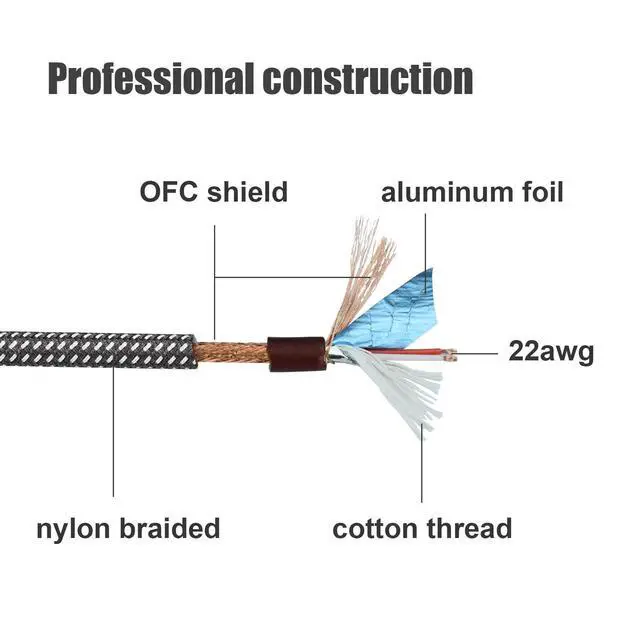 The conductor is full covered with spiral OFC(oxygen-free copper), and there is also aluminum foil under spiral OFC. With this two shield layer, the cable won't be affected by RFI and EMI easily, you are able to enjoy clear and beautiful sound.