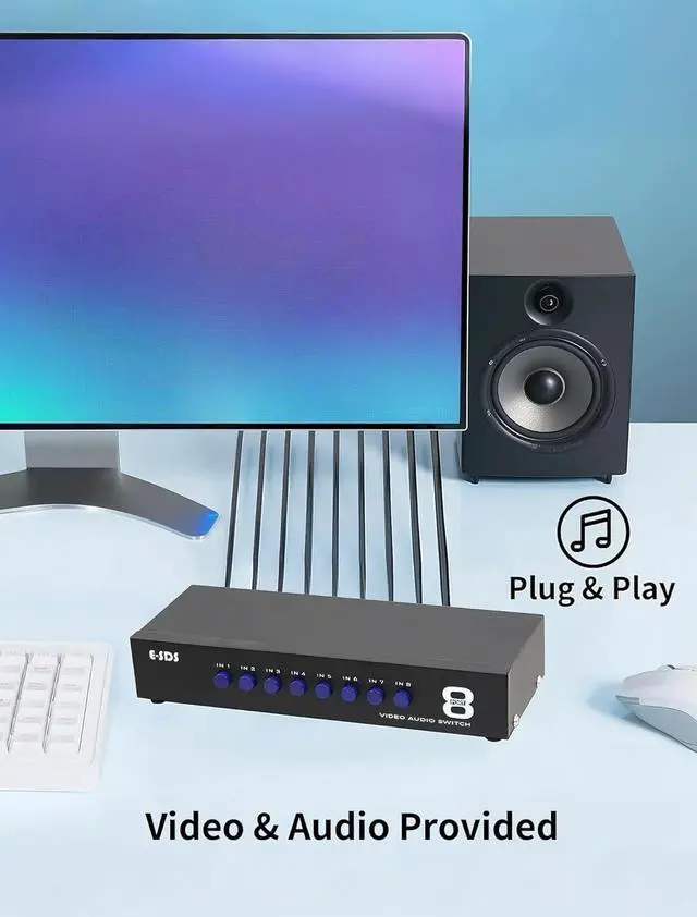 Metal enclosure for excellent longevity Enjoy your day with E-SDS 8-Way AV Switcher Metal enclosure for excellent longevity Enjoy your day with E-SDS 8-Way AV Switcher