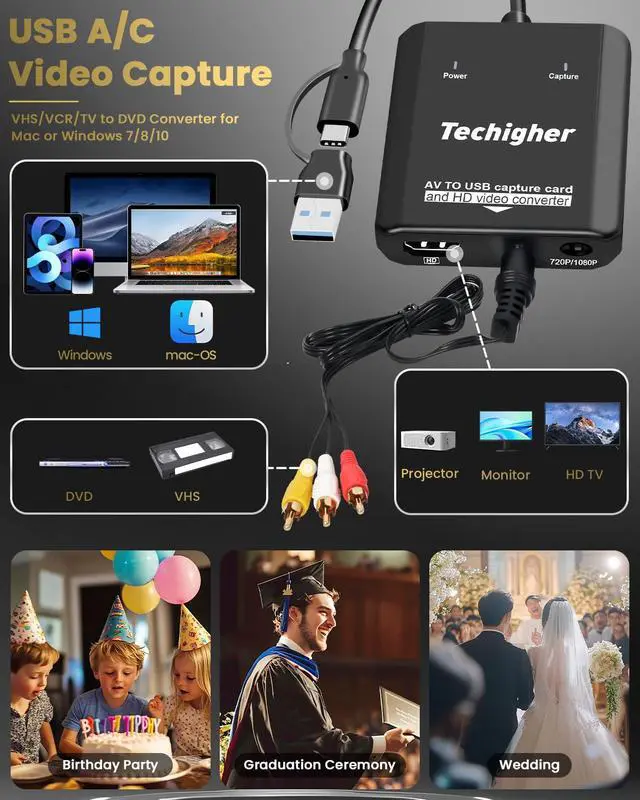 Work with WIN /Mac OS10.9 higher/Android,/Linux...support For PS2,PS3,Xbox,N64,STB, VHS, VCR, DVD Players and more with standard composite AV input.