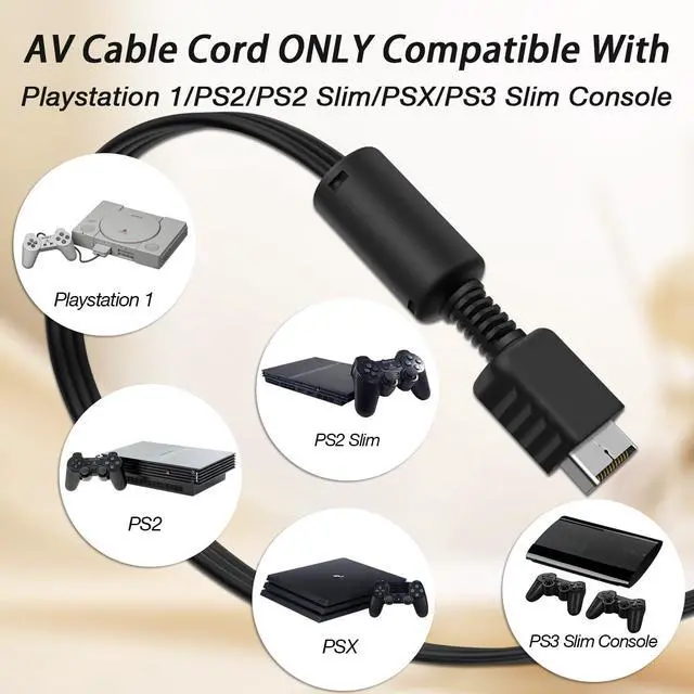 CompatibilityPS2 AV Cable only compatible with Sony Playstation, PS1, PS2, PS2 Slim and PS3 game consoles. A must-have accessory to play the Playstation games.