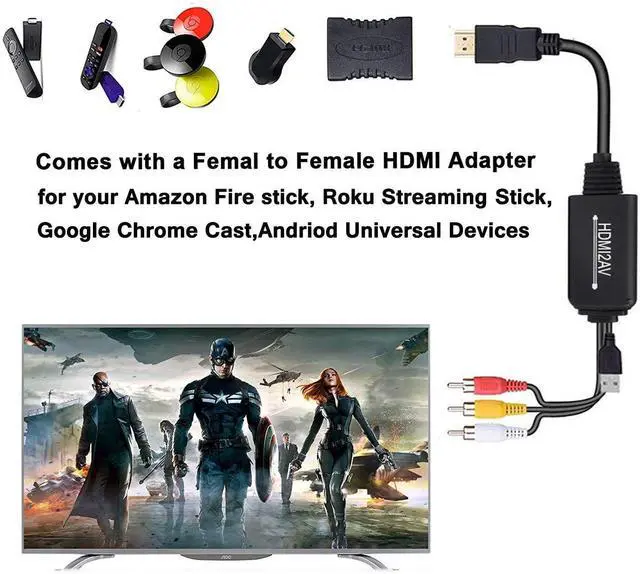 This HDMI to RCA Cable supports Roku, DVD, Fire Stick, cable boxes, and PS3, Xbox, Xbox 360, Blu-ray player and so on.