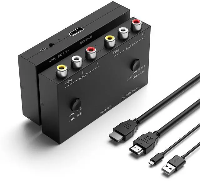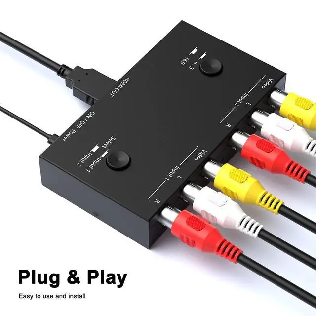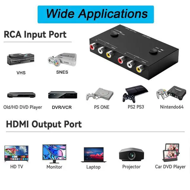 2 Port AV to HDMI Converter Compatible with WII, N64, PS 1, PS2, PS3, STB, VHS, VCR DVD Players, TV and Projector, etc.