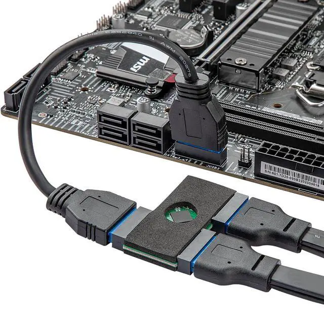 The USB 3.0 header extension cable is suitable for the motherboard can expand the USB3.0 19/20 pin header on the motherboard to 2 headers to facilitate the connection of more USB3.0 devices.