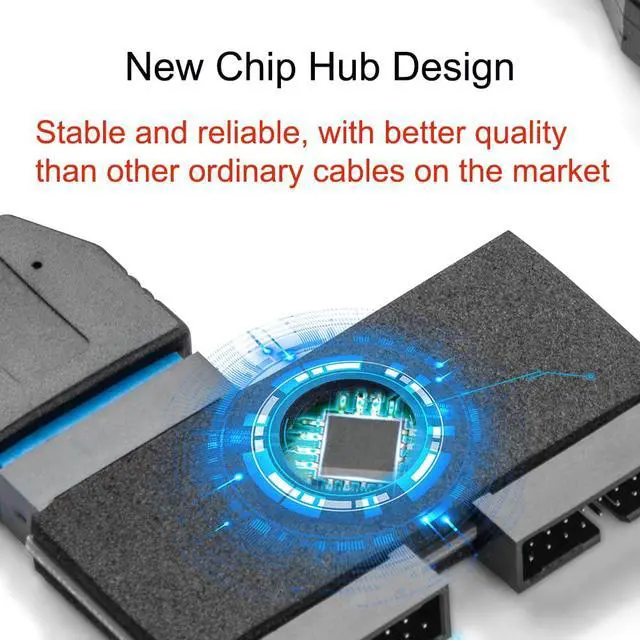 Upgraded USB 3.0 Header Splitter, Motherboard USB 3.0 Splitter, Motherboard 19Pin 20 Pin Header 1 to 2 HUB Extension Cable with Chip, Stable and Reliable