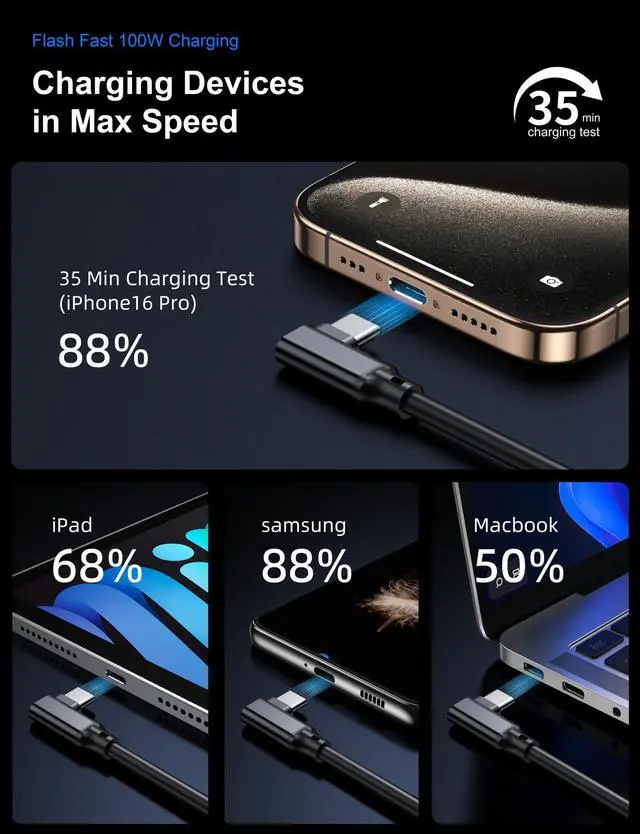 Support Max 100W Fast Charging, up to 10Gbps Data Syncing, and 4K@60Hz 3840*2160 video signal transferring for the connection between your device and another monitor or display with USB-C interface.