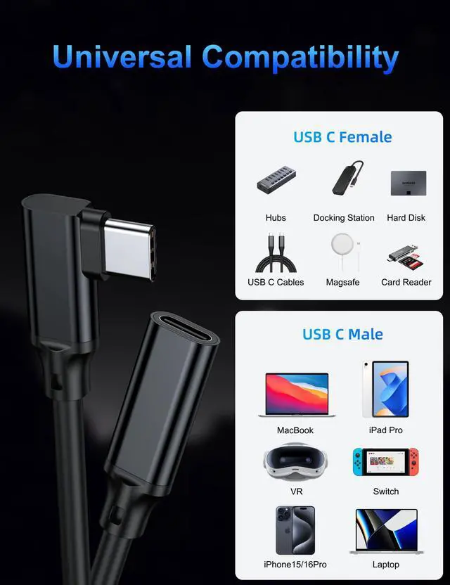 Extend the reach of your existing USB-C cables, which makes it easier to connect devices for greater convenience. It perfectly works for a majority of USB-C compatible devices.