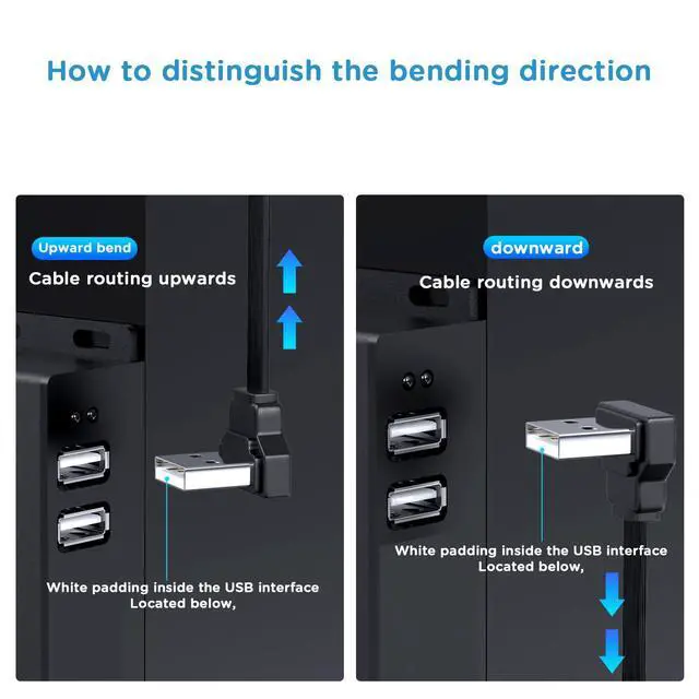 2 Pack USB extension cable 90 degree UP Angle and DOWN Angle. Usb extension cable Rightangle perfect for space saving and connection in narrow space