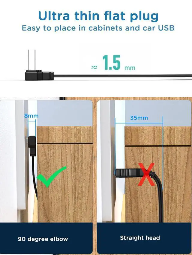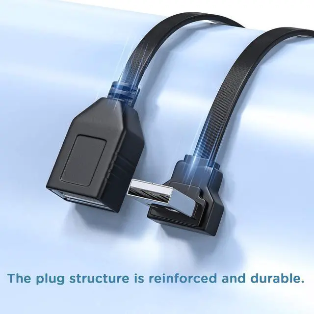 2PCS USB Extension Cable Flat 90 Degree Rightangle Male to Female USB 2.0 Cable Soft 1.5FT UP Angle+Down Angle one Each
