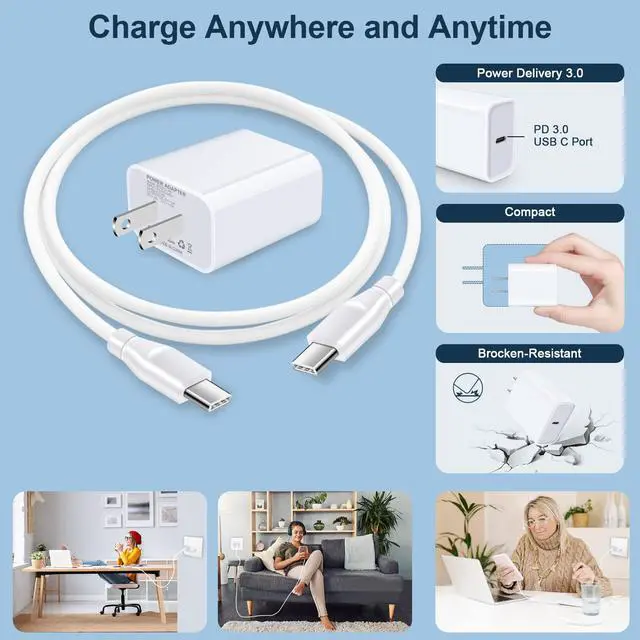 20W USB C Wall Charger 3A PD Power Adapter with Type C to C Cable