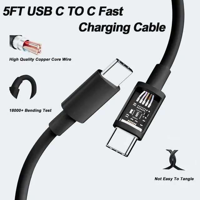 Package Content: 1x 30W Charger Adapter & 1x 5ft USB C to Type C Cable Cord(Black).