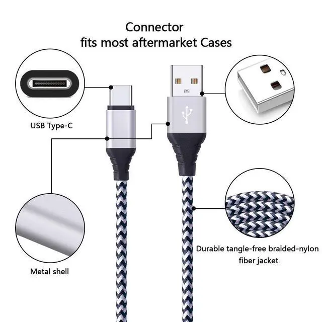 Three 6ft A to C Cables for a new generation of Type-C devices. Charge or transfer data between Android phones, or your mobile accessories. A durable multi-pack of cables with reinforced insulation designed to withstand everyday stress, bends, twists, and pulls.