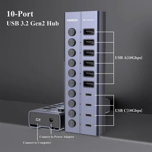 10Gbps Super SpeedFIDECO USB hub features USB 3.2 Gen 2 standard with maximum data transfer speed up to 10Gbps, and it will greatly improve your work productivity and connectivity.