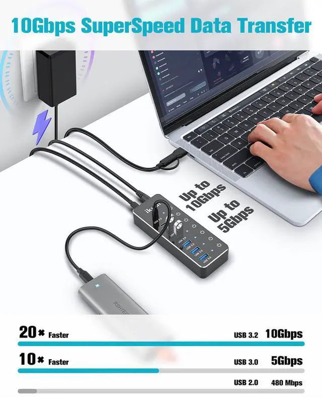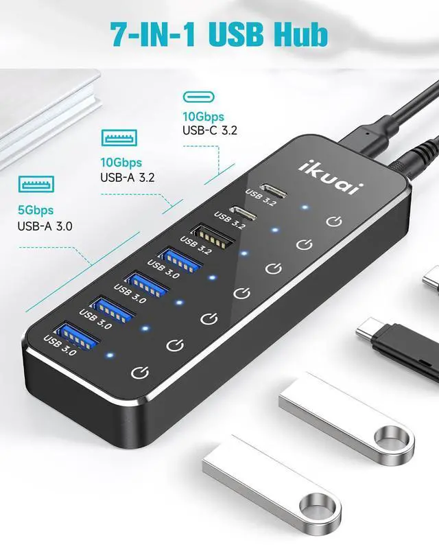 ikuai USB 3.2/USB C to 7 Port Data Hub