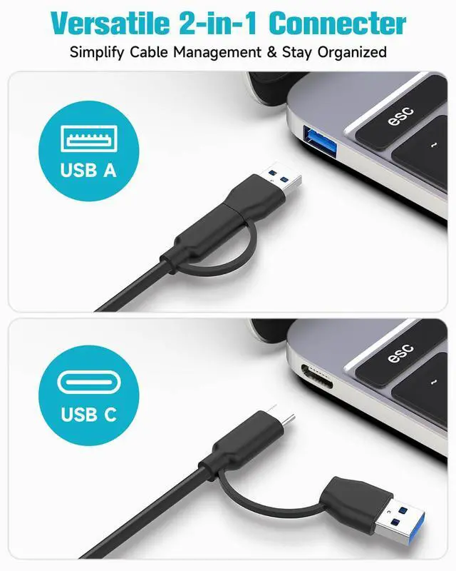 - With 3.3ft Detachable 2-in-1 data cable, say goodbye to the dilemma of not having enough ports on your laptop.