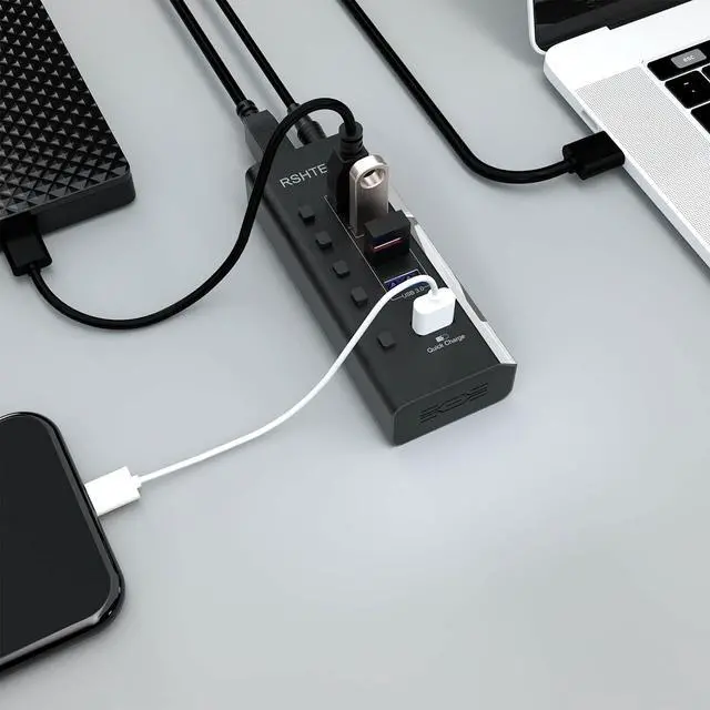Individual On/Off Switches: Each USB port has an On/Off switch with LED indicator, easy to show power status. Once power is restored, the ports maintain the status that set earlier