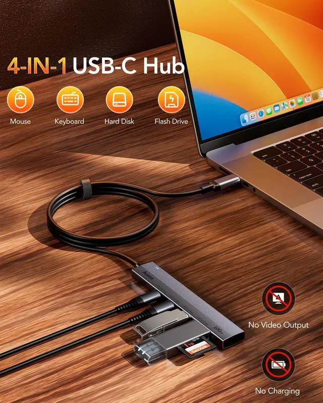 4 Port USB C Data Ports Hub Adapter- This USB C 3.2 Hub has 4 USB-C 3.2 ports to Easily Connect Multiple Type-C Devices to your laptop and Transfer files quickly for your daily needs!Note: USB C Multiport Adapter only supports data transfer, Not supports charging and extend monitor.
