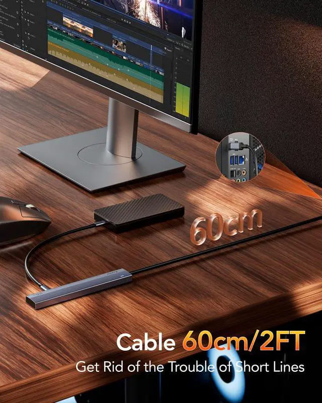 2ft Cable USB C Multiport Adapter- Aceele USB Type C Hub for Laptop with a 2 ft cable, Our usb c converter can be easily connected to desktops mini PC and laptops, getting rid of the hassle of short cables.Aluminum housing can effectively dissipate heat and has very good heat dissipation.