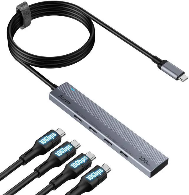 USB C Hub 10Gbps, 4 Port USB 3.2 Gen 2 Hub, USBC to USB-C Hub with 60cm/2ft Long Extension Cable, USBC Adapter Data Hub for MacBook Pro, MacBook, Samsung Chromebook and More