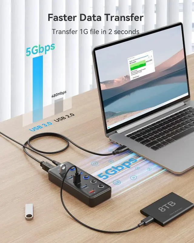 This USB 3.0 hub powered hub is a USB splitter 3.0 for keyboard, mouse, HDD, flash drive, camera, printer, scanner, and other USB devices, it is a good USB 3.0 hub for laptops, PS5/4, Xbox One, phones, PC and more, backward compatible with USB 2.0 and 1.1.