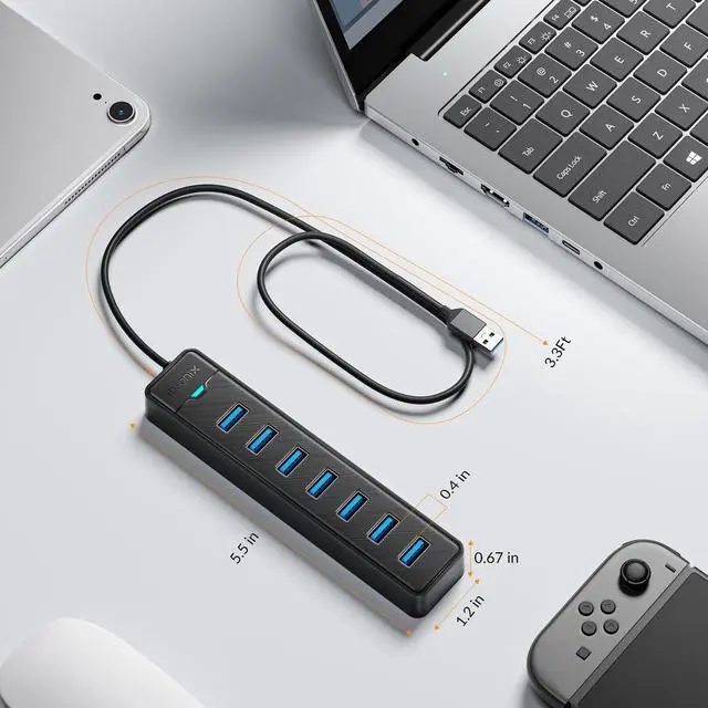 ![Alt view image 4 of 7 - 7 Ports USB Hub 3.0 [3.3Ft] USB Expander Hub 5Gbps USB Splitter Multiport Adapter, USB Hub Long Cable for Desktop, PC, Laptop, Flash Drive, Mobile HDD, Windows/XPS, 100cm](https://c1.neweggimages.com/productimage/nb640/C5MSD2603180K2NF28A.jpg)
