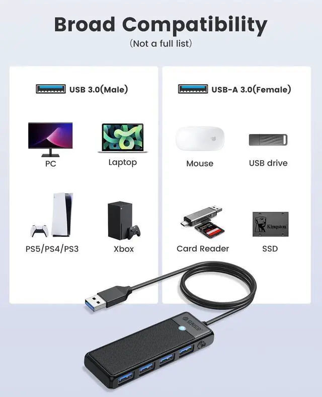 ORICO 4-Port USB 3.0 Hub Ultra-Slim Data USB Splitter