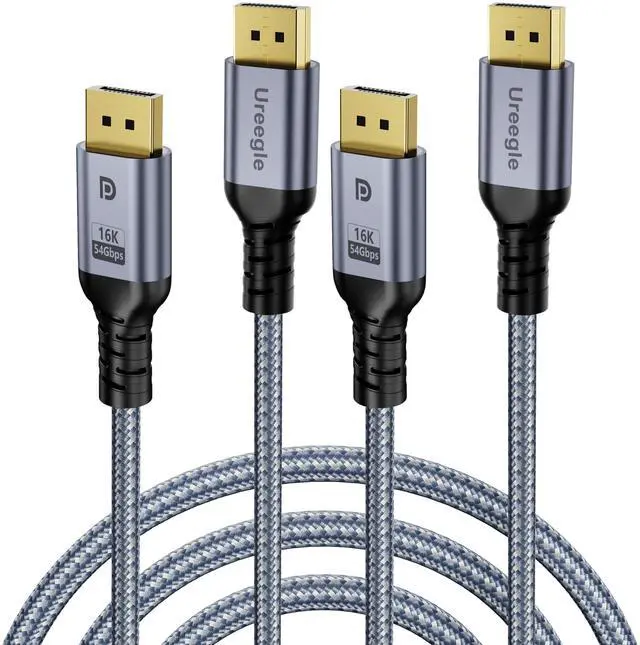 2.1 Cable 2-Pack, 6.6 ft DP Cables 16K@60Hz, 8K@120Hz, 4K@240Hz 165Hz 144Hz, Display Port Cable Support 54Gbps for Gaming Monitor, PC, RTX 5050-5090 RX 9060/70 XT Graphics Card Desktop GPU