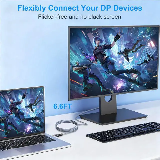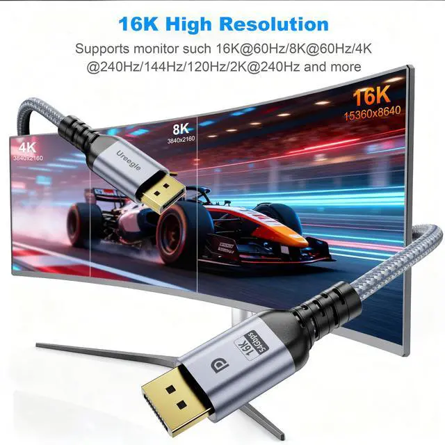 Ultimate Gaming ExperienceThe 16K display port 2.1 cable is specially designed for gamers, much faster than the prior DP 1.4 spec; Our 16K displayport 2.1 support 3D, HDR, HDCP 2.2, DSC1.2a and MTS for an unmatched immersive experience, while VRR, ALLM G-Sync, and FreeSync+, wiping out lag and screen tearing for ultra-smooth gameplay, especially in FPS, 3A, and MOBA games; Dynamic HDR+ delivers realistic visual effects with rich colors and contras; 32-bit Dolby&eARC audio capturing the faintest enemy footsteps and breathing