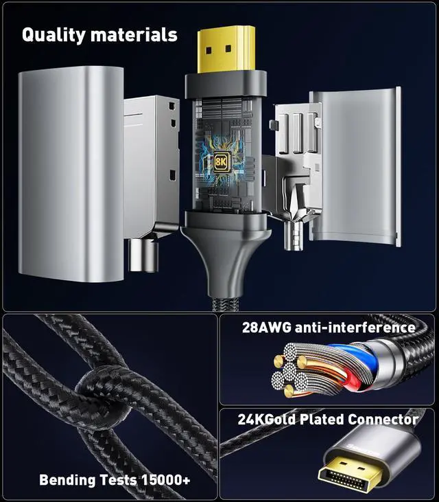 8K DisplayPort to HDMI Cable will be more suitable for your daily needs. The ultra high refresh rate is better than 4K HDMI to DisplayPort cable for ultra high definition image processing and super fast action game graphics processing. For those looking for efficient daily office productivity, 8K cable will be your ideal choice