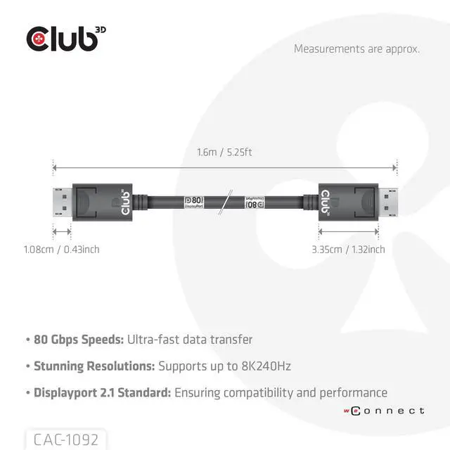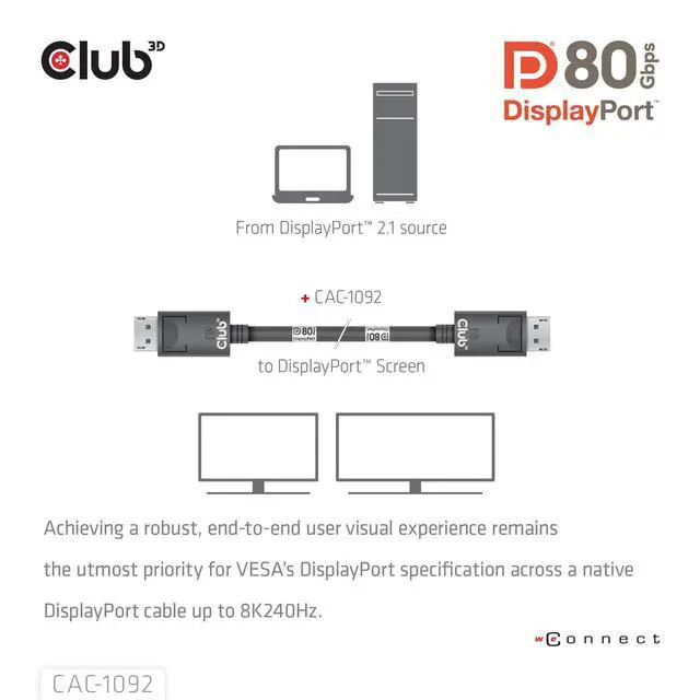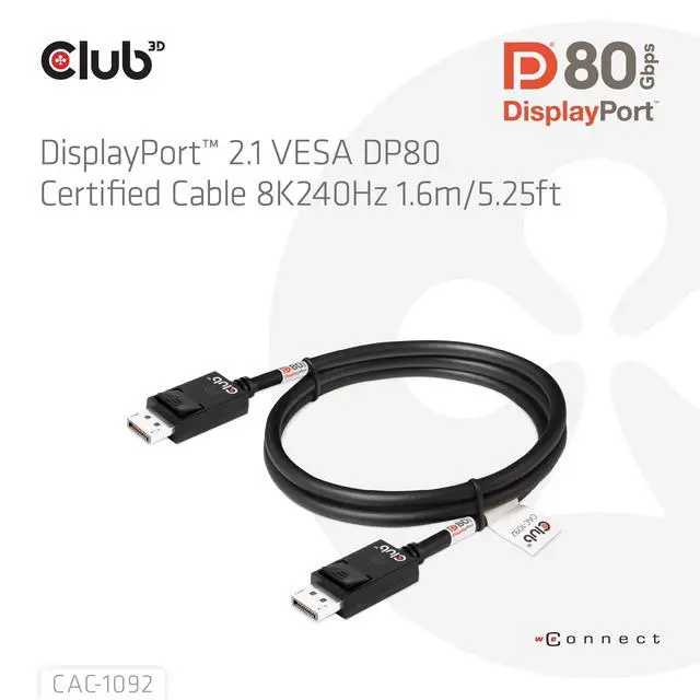 Club 3D VESA DP80 and DP54 certified Cables