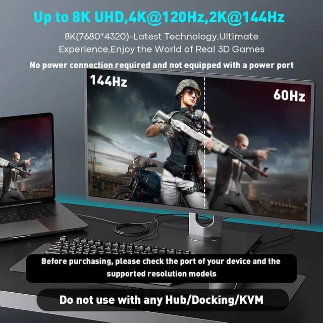- Support resolution 8K@60Hz/4K@120Hz/2K@144Hz/2K@144Hz/2K@120Hz/1080p@60Hz - Does not support 2K@240Hz