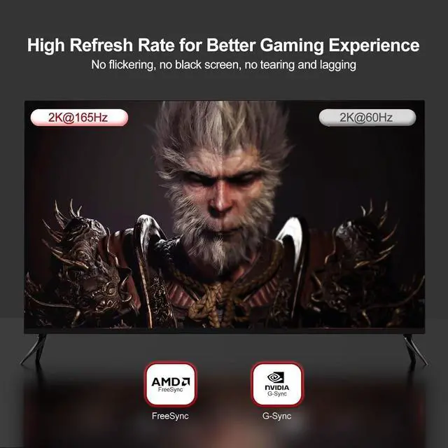 Incredible Performance: The high refresh rate of 2K@165Hz makes the game more smooth, the screen scrolls more smoothly, and the touch feedback is faster. This DP cable support 21.6Gbps high-speed transfer, HBR2 rated; Supports FreeSync and G-Sync technology, 8-bit and 10-bit deep color and sharp images;Compatible with Audio Return Channel (ARC), 3D Surround, Digital 7.1, 5.1 channels, DTS-HD, and Dolby audio