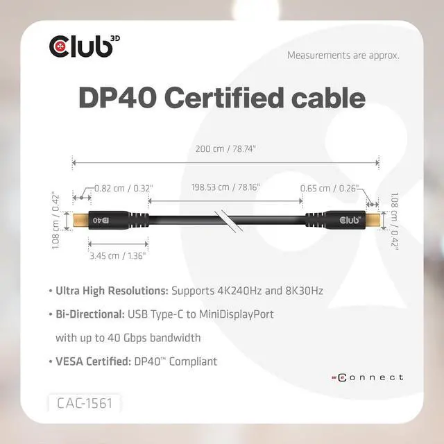 Club 3D VESA DP80 and DP40 Certified Cables