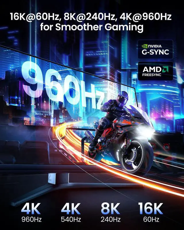Born for gaming16K DisplayPort cable is tailored for high-end gamers. Featureing VRR, FEC, ALLM and DSC 1.2a technologies for stable, ultra-smooth and tear-free visuals, no lag, and flickering. MST technology allows multi-monitor setups to expand your gaming world. For multiple screens, use the same cable type-do not mix DisplayPort and HDMI. Dynamic HDR enhances dark scenes and details, while 32-bit audio and lossless surround sound pass-through, helping you spot enemies in FPS and AAA games