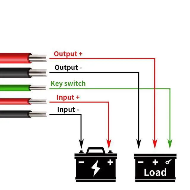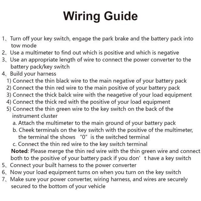 If you don’t have a key switch, please merge the thin red wire with the thick green wire and connect both to the positive of your battery pack.