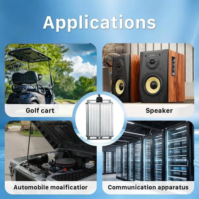 DC DC 12V converter are widely used in golf cart, car truck, led strip light, screen, monitoring system, speaker, motor and DIY etc.