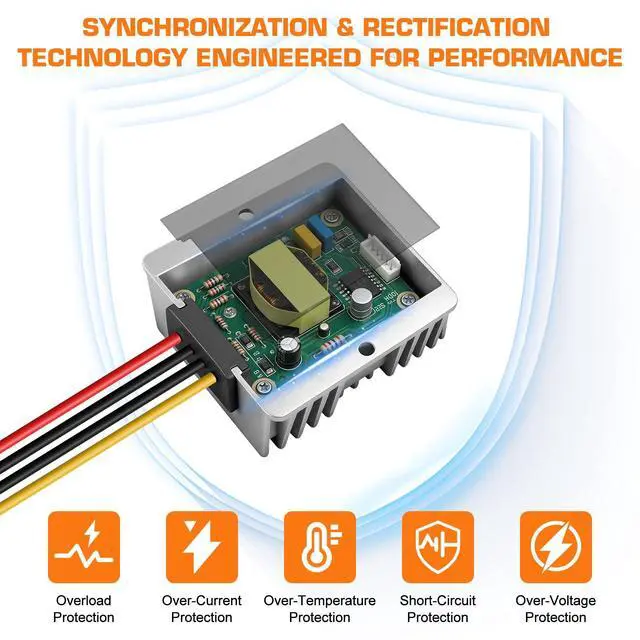 Wide Input Voltage RangeThis DC to DC converter supports DC 30 V 60 V input (rated at 36 V / 48 V), making it an ideal 48V to 12V converter for vehicles, solar systems, and industrial equipment. It ensures stable power conversion under various voltage conditions