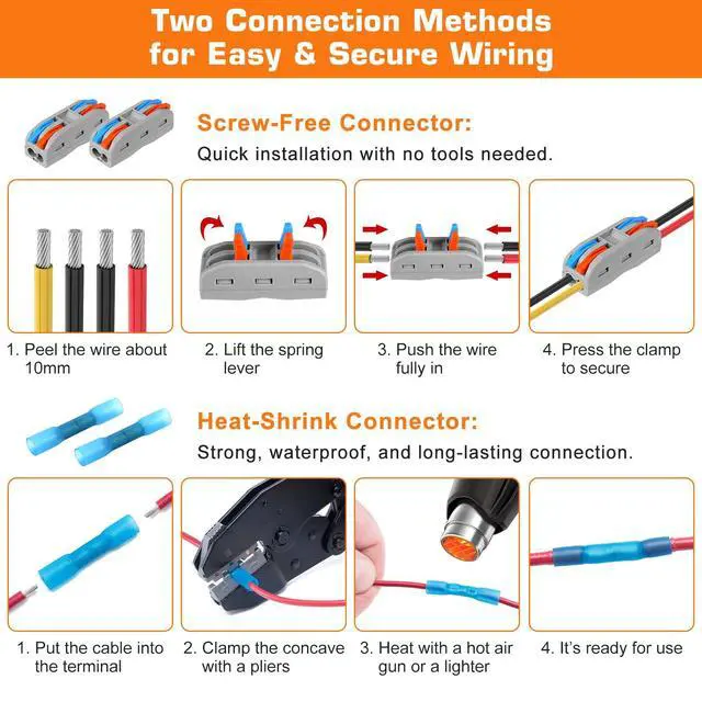 Easy Installation & Solid Construction: Features two connection methods: tool-free screwless terminals for quick setup and heat-shrink connectors for permanent installation. The compact die-cast aluminum housing ensures excellent strength, vibration resistance, and long-lasting durability.
