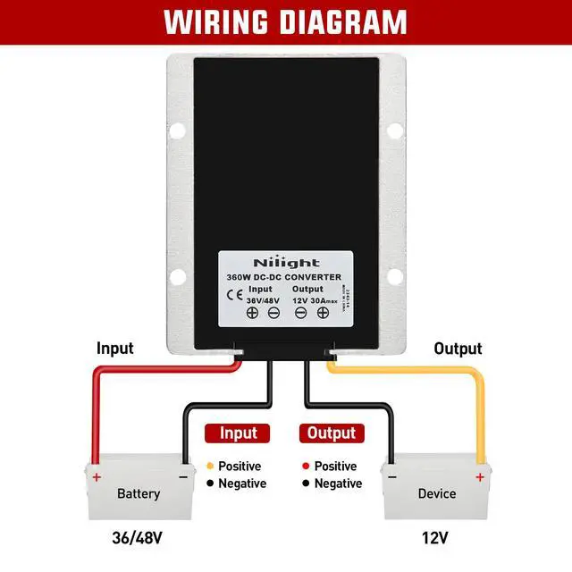 Nilight 360W 36V/48V to 12V 30A DC-DC Converter