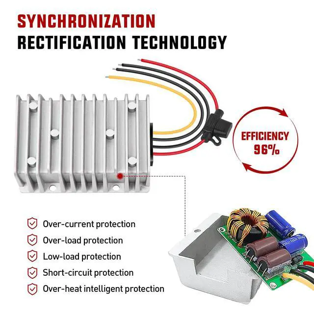 | Package Included | 360W 36V/48V to12V 30A DC-DC Converter with fuse*1, Quick Connect Ternimal*2, 25A Fuse*1 |