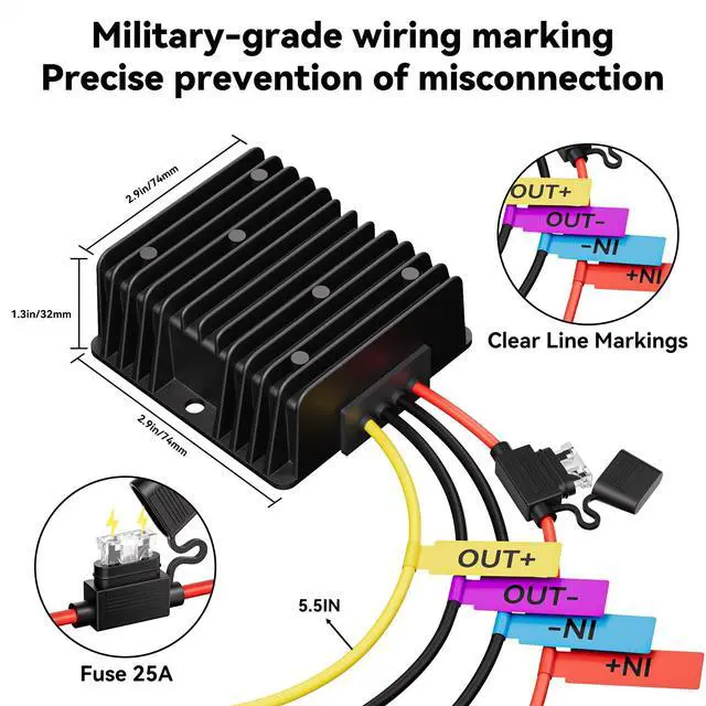 Effortlessly steps down voltage for ?golf cart voltage reducer? systems (20V-60V input ? 12V 20A 240W)