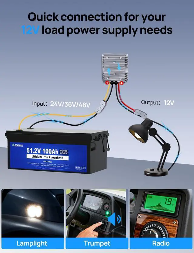 Widely used in: Golf carts, trucks, LED lights, audio systems, monitoring systems, motors, and DIY projects