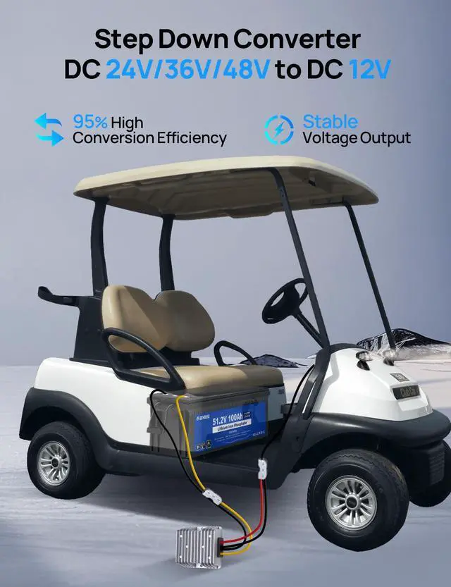 DC 48V/36V/24V to 12V Converter: Supports 20-60V input and stable 12V output, ideal for powering 12V DC devices in golf carts and other utility vehicles, serving as a universal voltage conversion solution