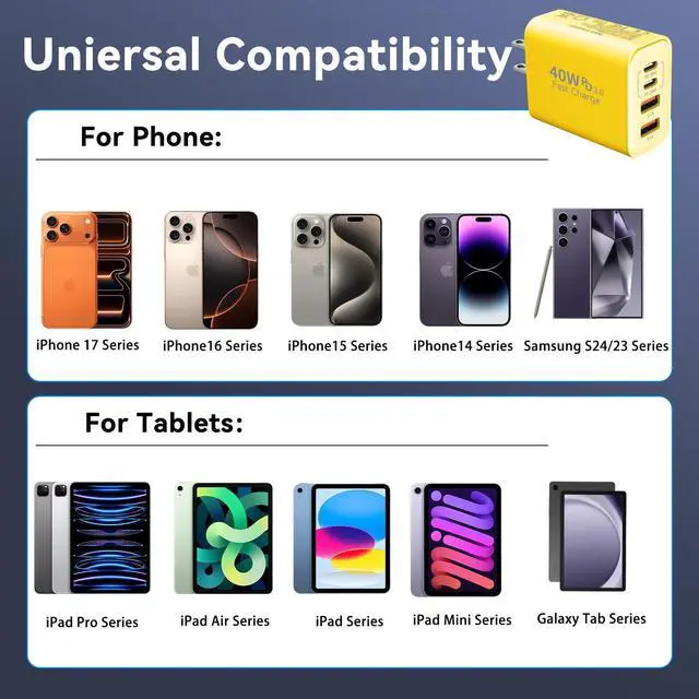 | Compatible Phone Models | for Phone 17 Pro Max/17 Pro/17 Air/17, Phone 16/ 16 Pro/16 Pro Max/16 Plus Phone 15/ 15 Pro/15 Pro Max/15 Plus, iPad Pro 12.9 6th/ 5th/ 4th/ 3rd, iPad Pro 11 inch 4th/ 3rd/ 2nd/ 1st, i-Pad 10th Generation, i-Pad Air 5/ 4, i-Pad Mini 6, Google Pixel 7/7 Pro/6/6 Pro/6a/5/5a/4/4a/4xl/3/3a/3xl/2/2xl/xl,Galaxy S25 Ultra/S25+/S25/S24 Ultra/S24+/S24/S23 Ultra/ S23+/S23/S22 Ultra/ S22+/S22/S21 5G, S21+ 5G. |