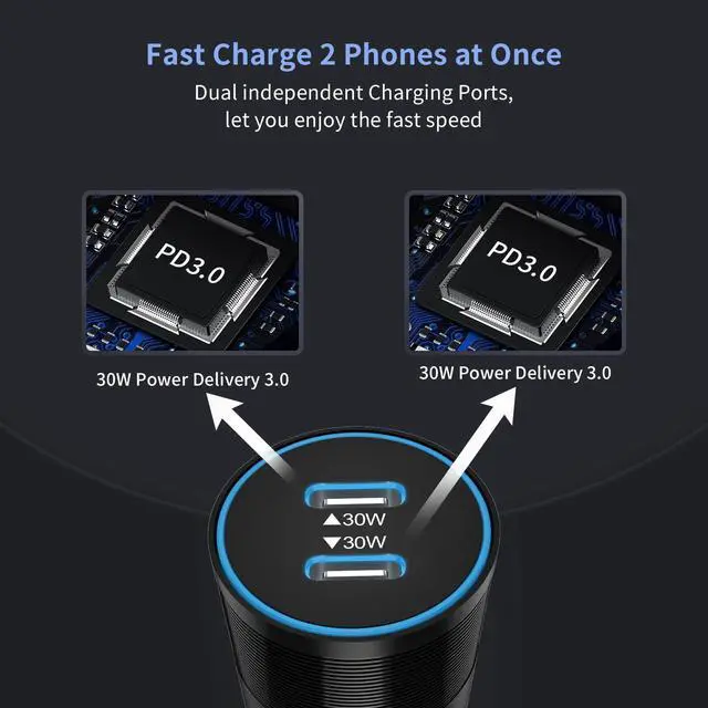 WORSORS Upgraded 60W(30W+30W) Dual USB C Car Charger Cigarette Lighter Adapter