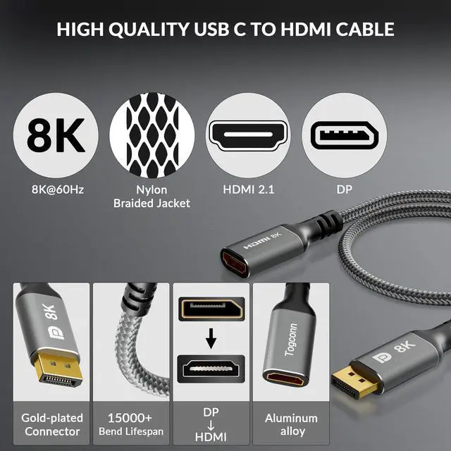 8K UHD ResolutionOur DP to HDMI adapter supports up to 8K@60Hz, 4K@120Hz, 4K@144Hz, 2K@240Hz and backwards compatibility 4K@60Hz, 4K@30Hz 2K, 1080P. More precise visual effects than 4K, making it an ideal choice for high-intensity gaming and movie immersion.