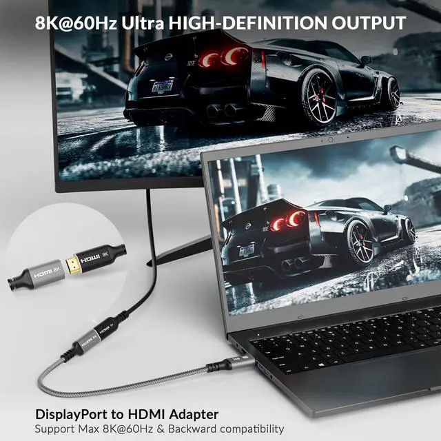 Wide Compatibility : No drive required. This 8K DP to HDMI adaptor is compatible with various laptops, desktop tower, GPU and other devices with a DisplayPort. Such as HP ProBook EliteBook, Dell OptiPlex/Precision/XPS, Graphics card (AMD, NVIDIA), Lenovo ThinkPad and More.